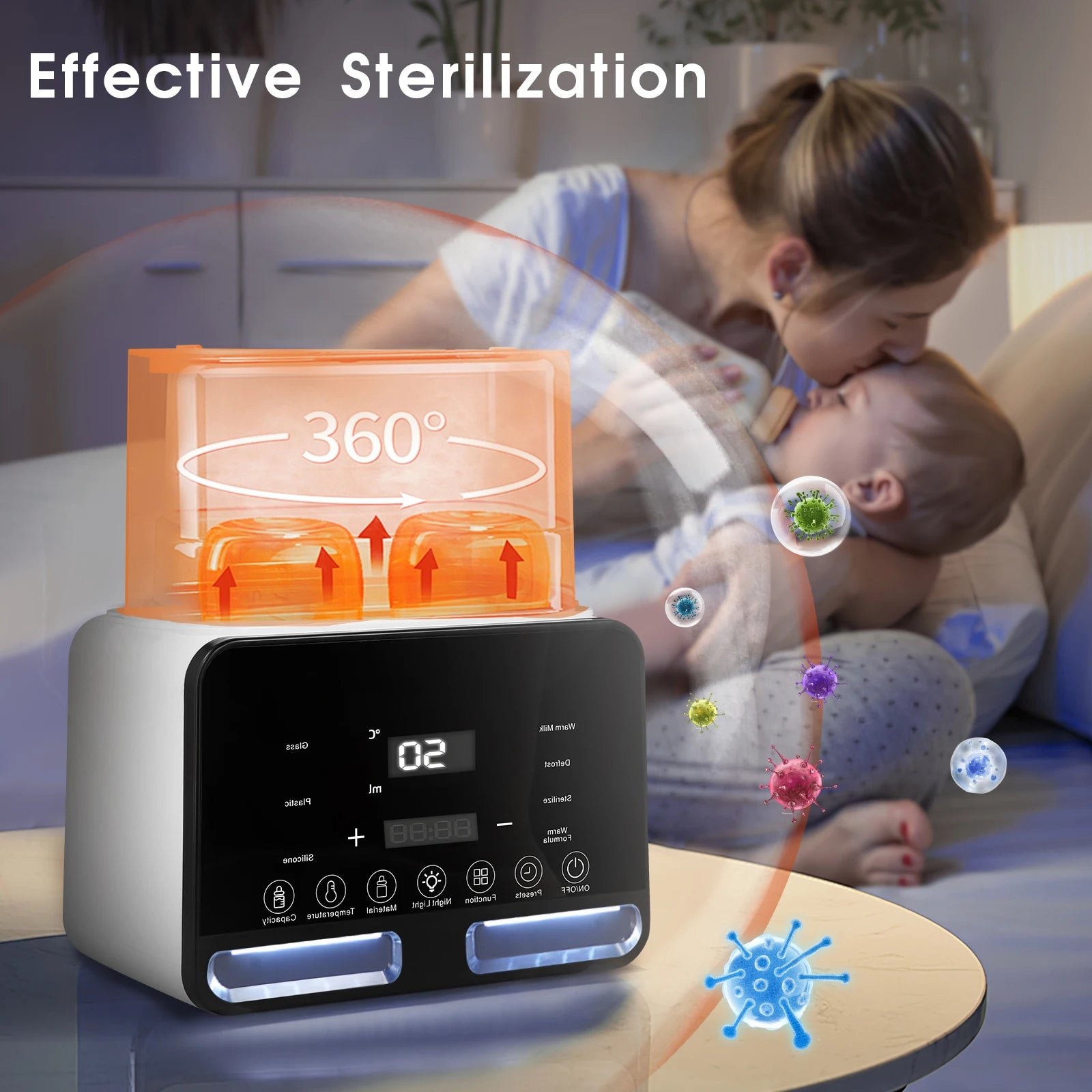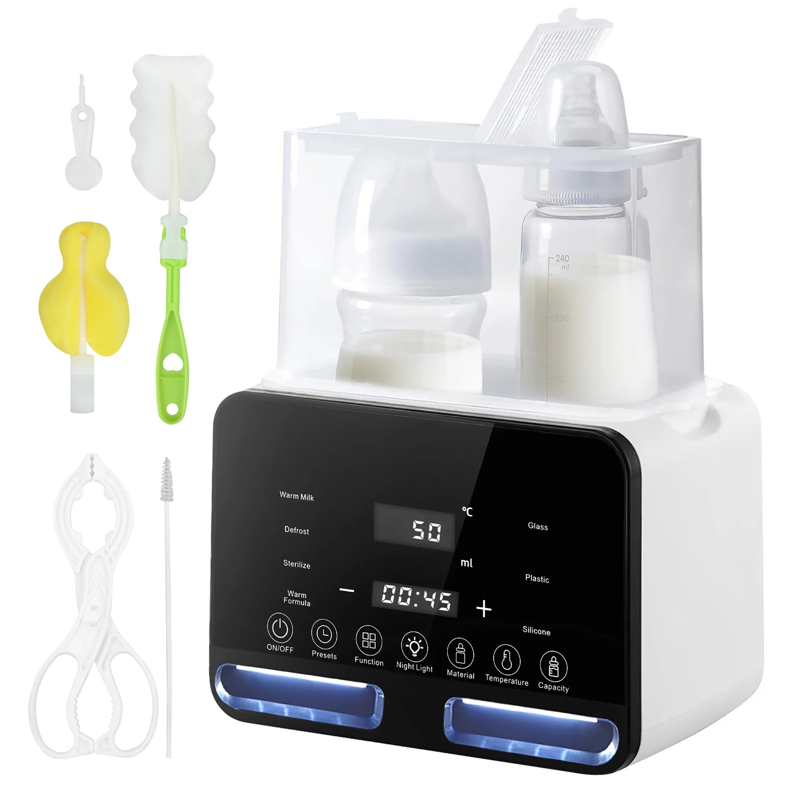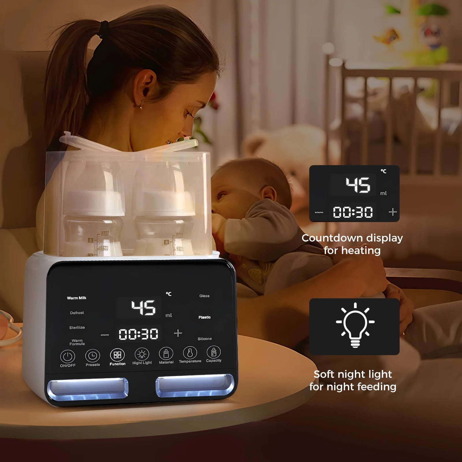 9 in 1 Milk Warmer Dual Bottle Multi-Function Steriliser LCD Display Nightlight Temperature Control Food Defrosting/Warming