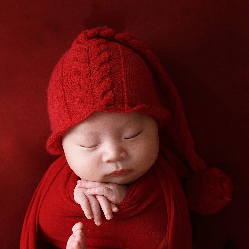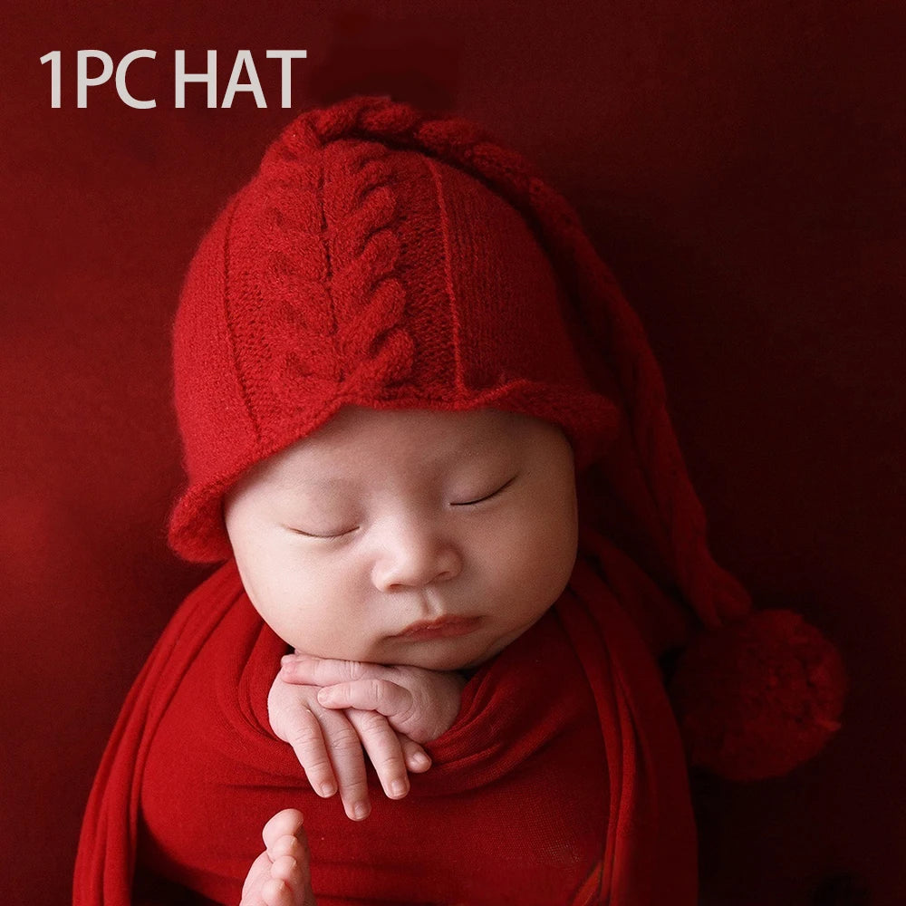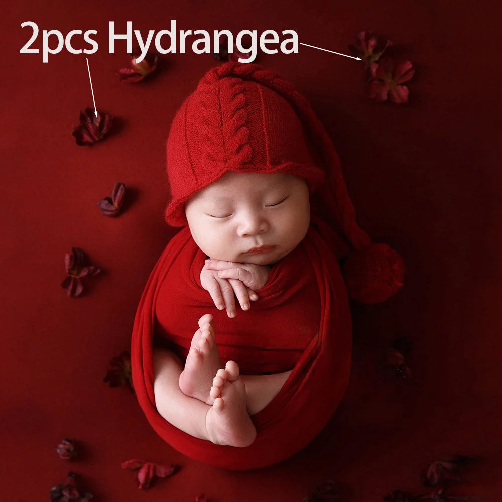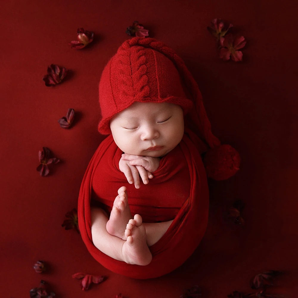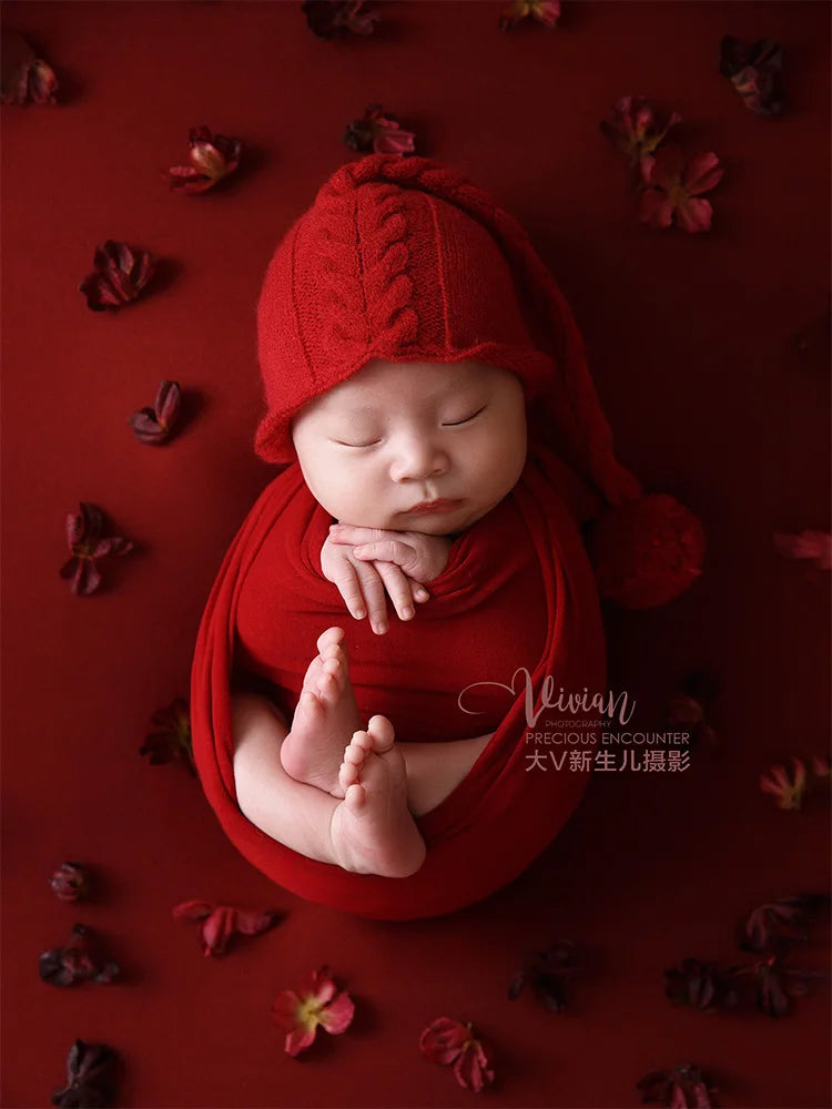 6pcs/Set Newborn Photography Props Soft Stretchable Baby Swaddle Wrap Headflower Red Theme Studio Infant Photography Accessories