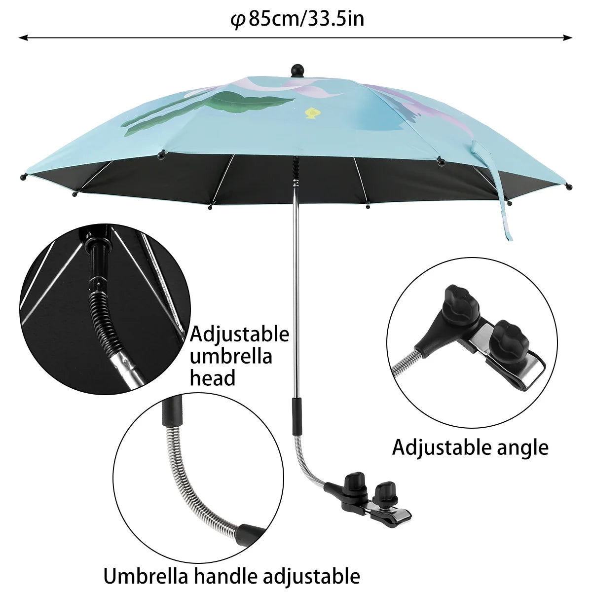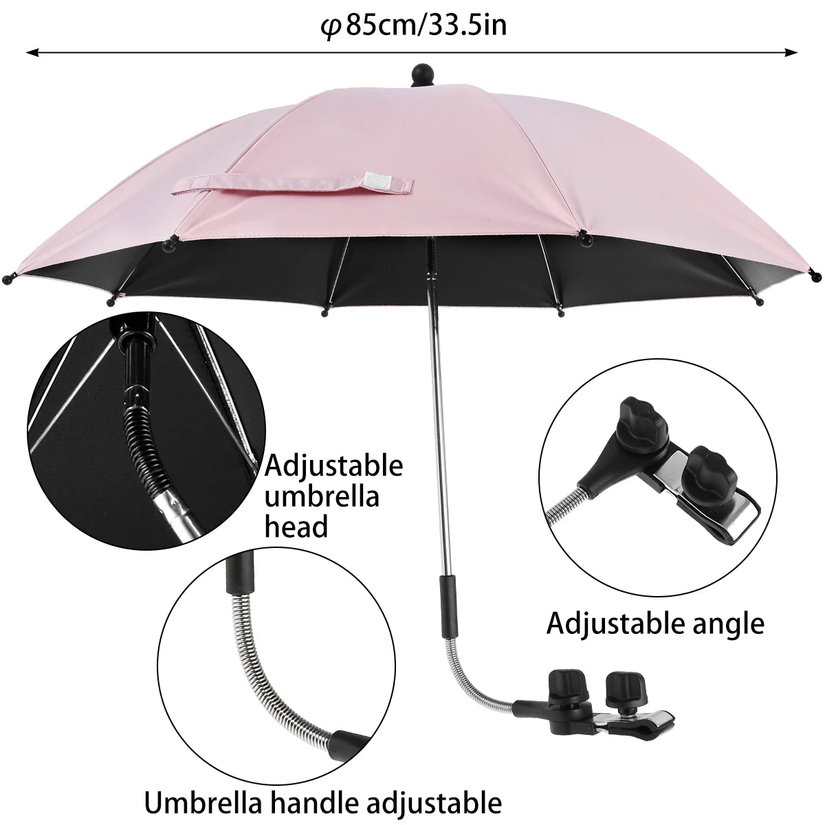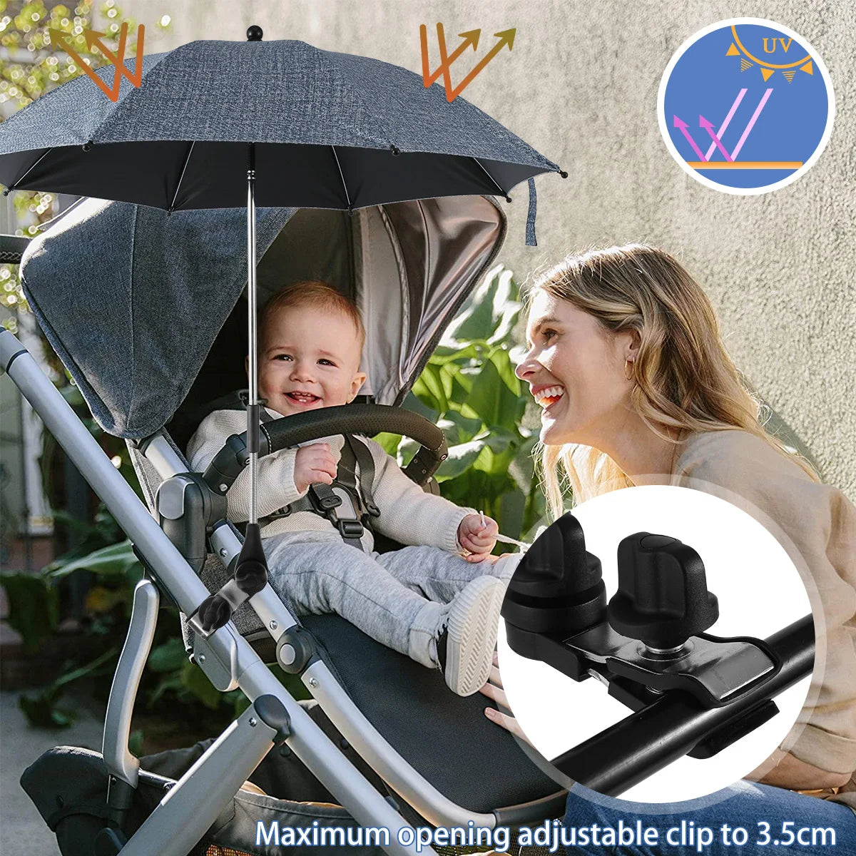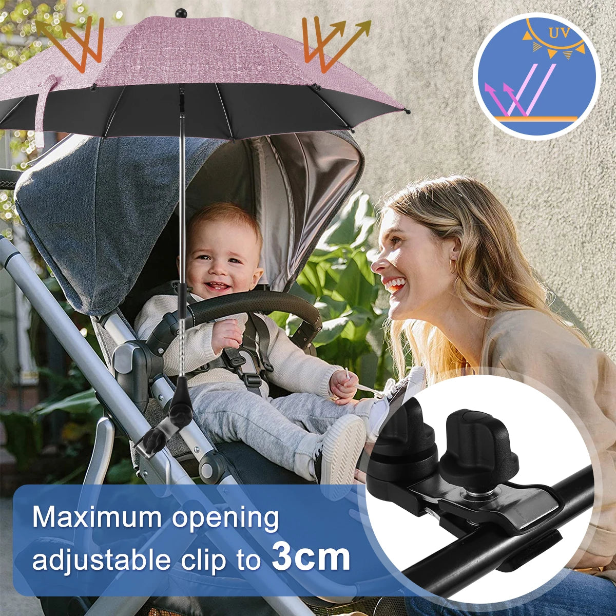 Baby Stroller Folding Umbrella Anti-UV Sun and Rain Umbrella 360° Adjustable Universal Stroller Portable Sunshade