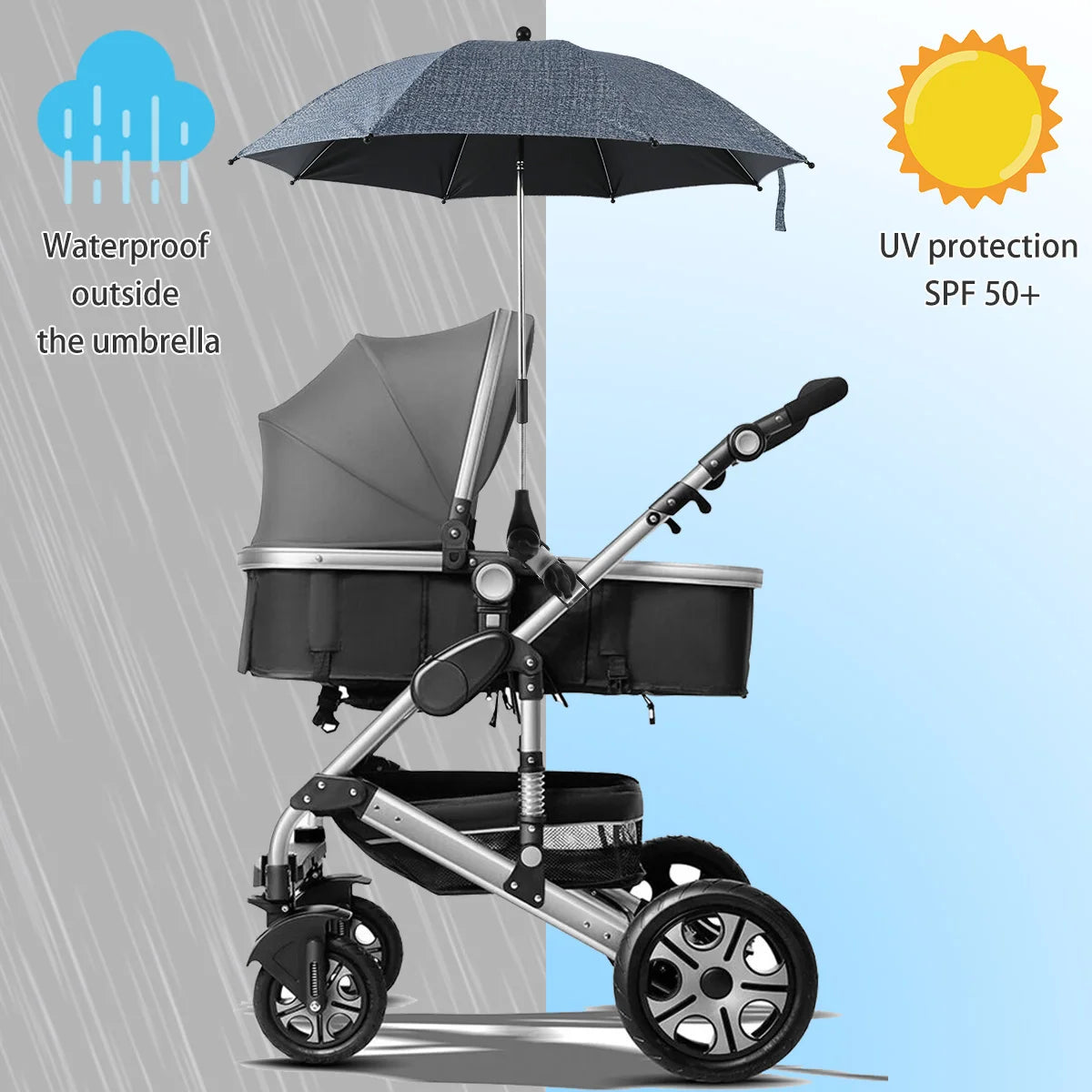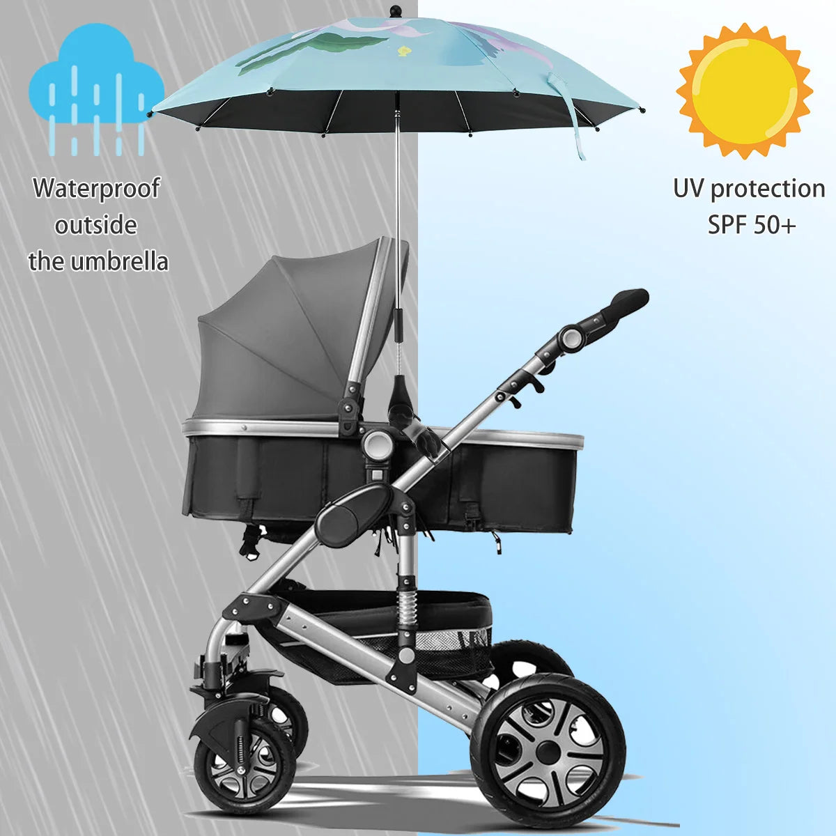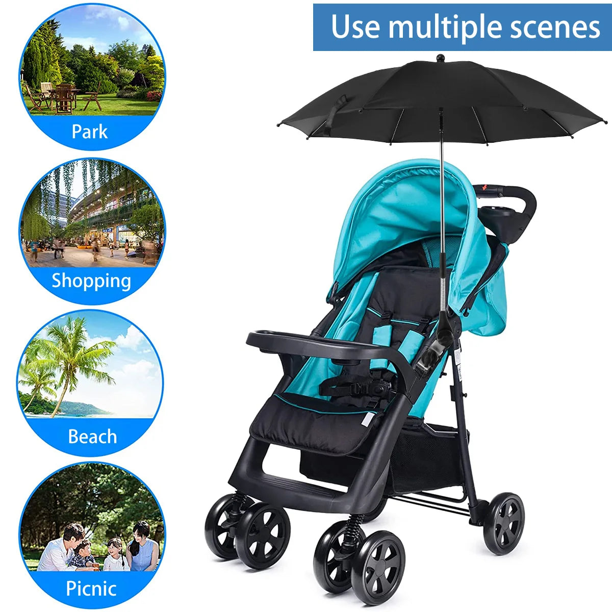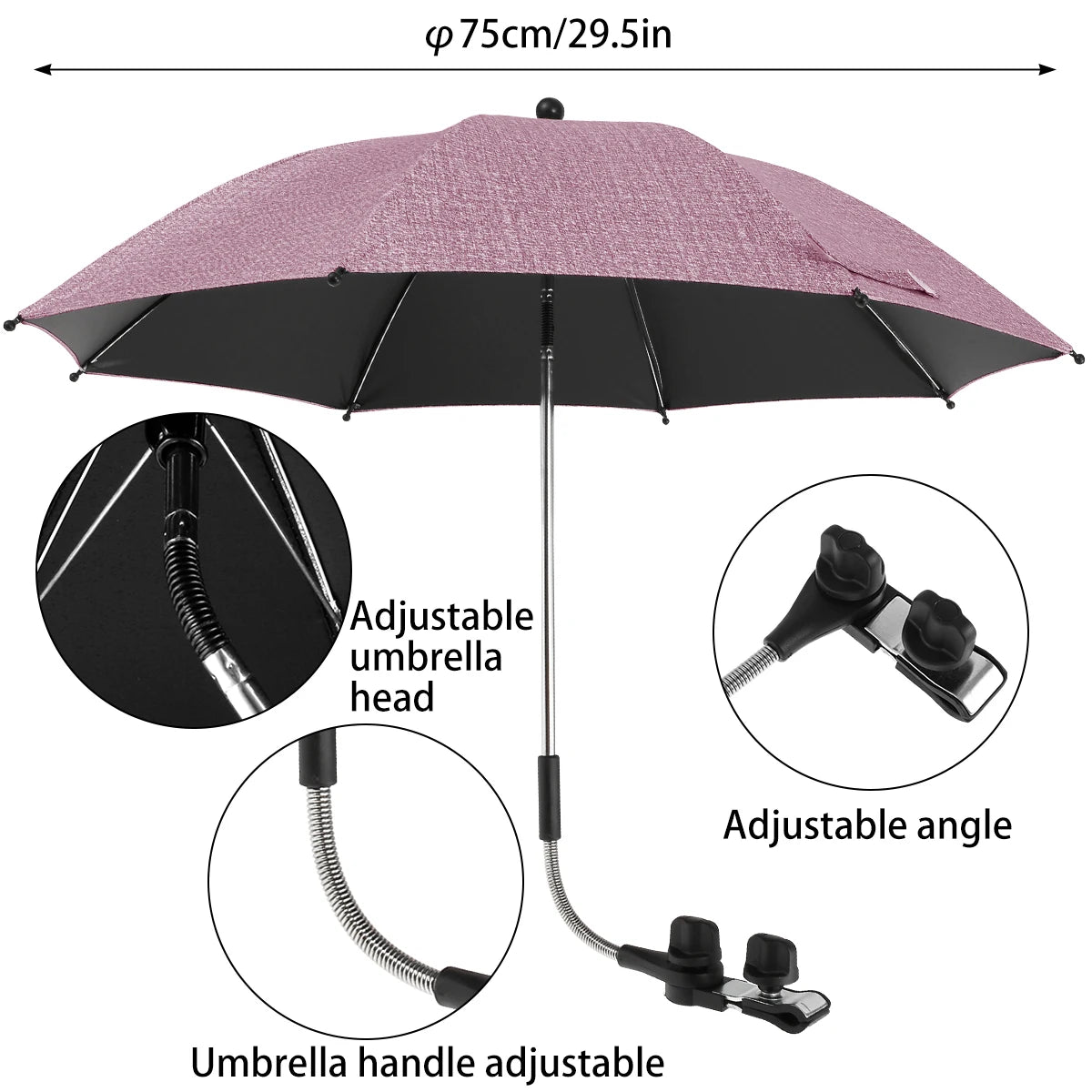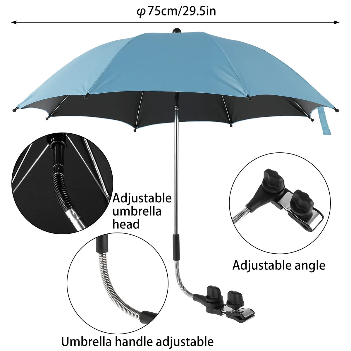 Baby Stroller Folding Umbrella Anti-UV Sun and Rain Umbrella 360° Adjustable Universal Stroller Portable Sunshade