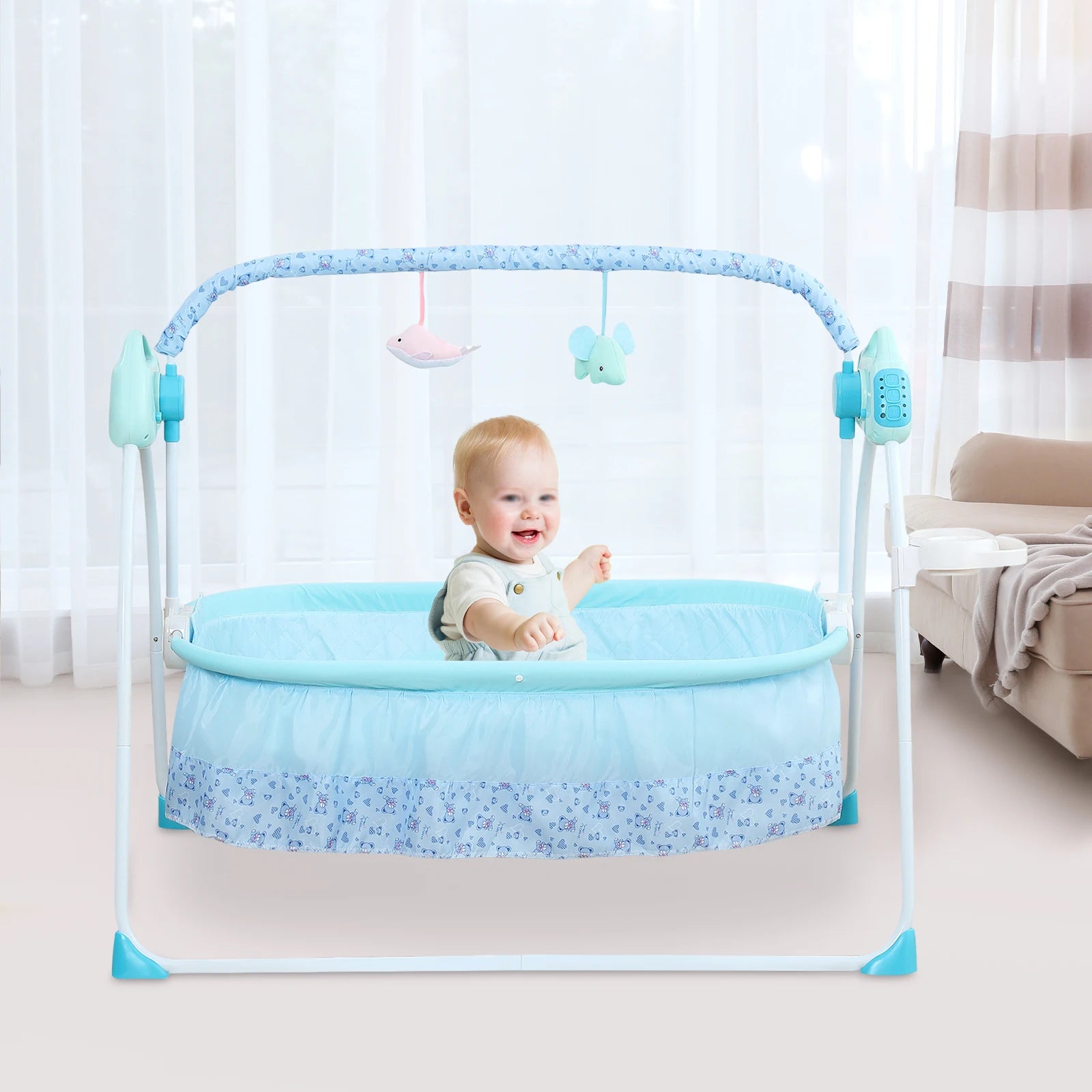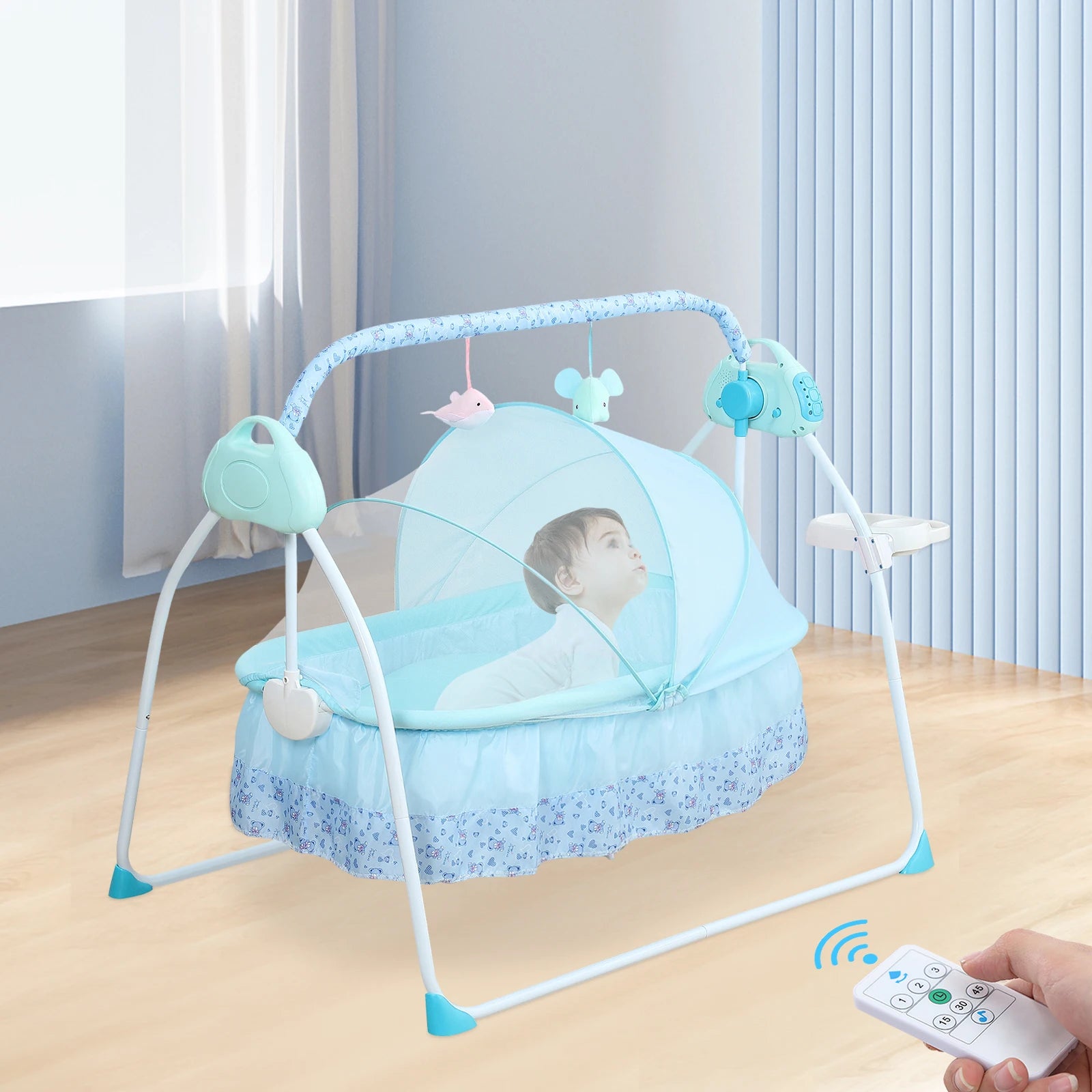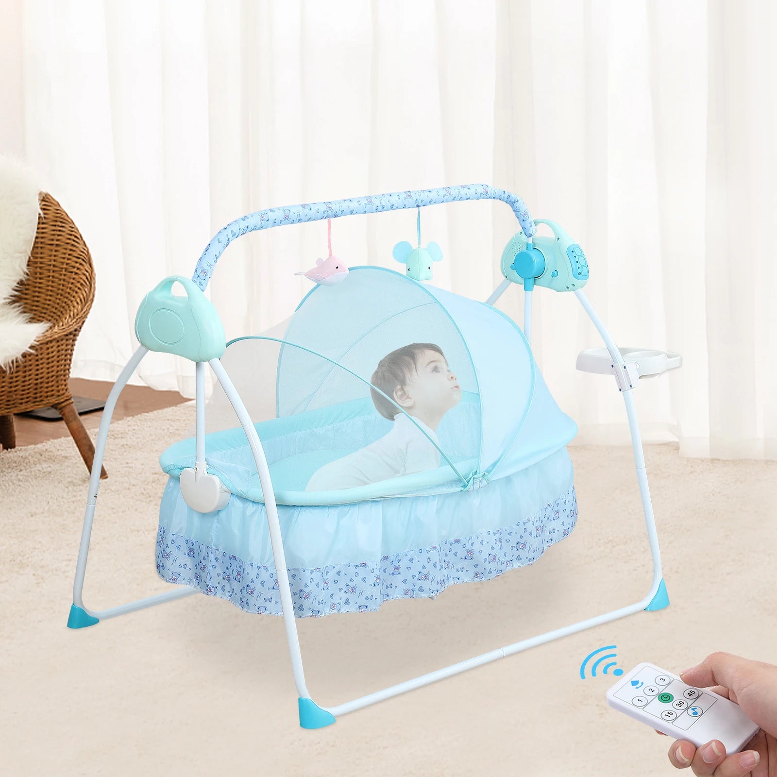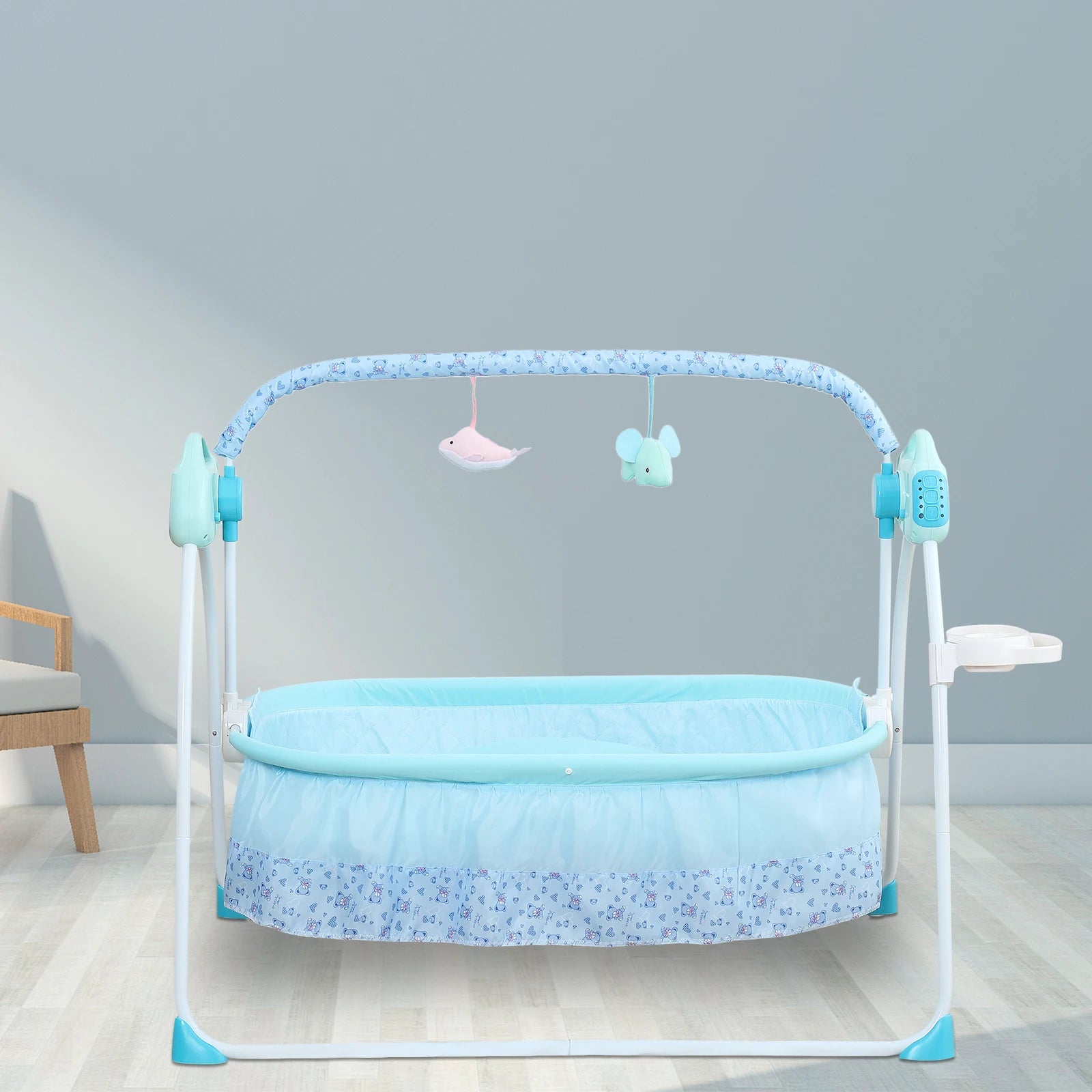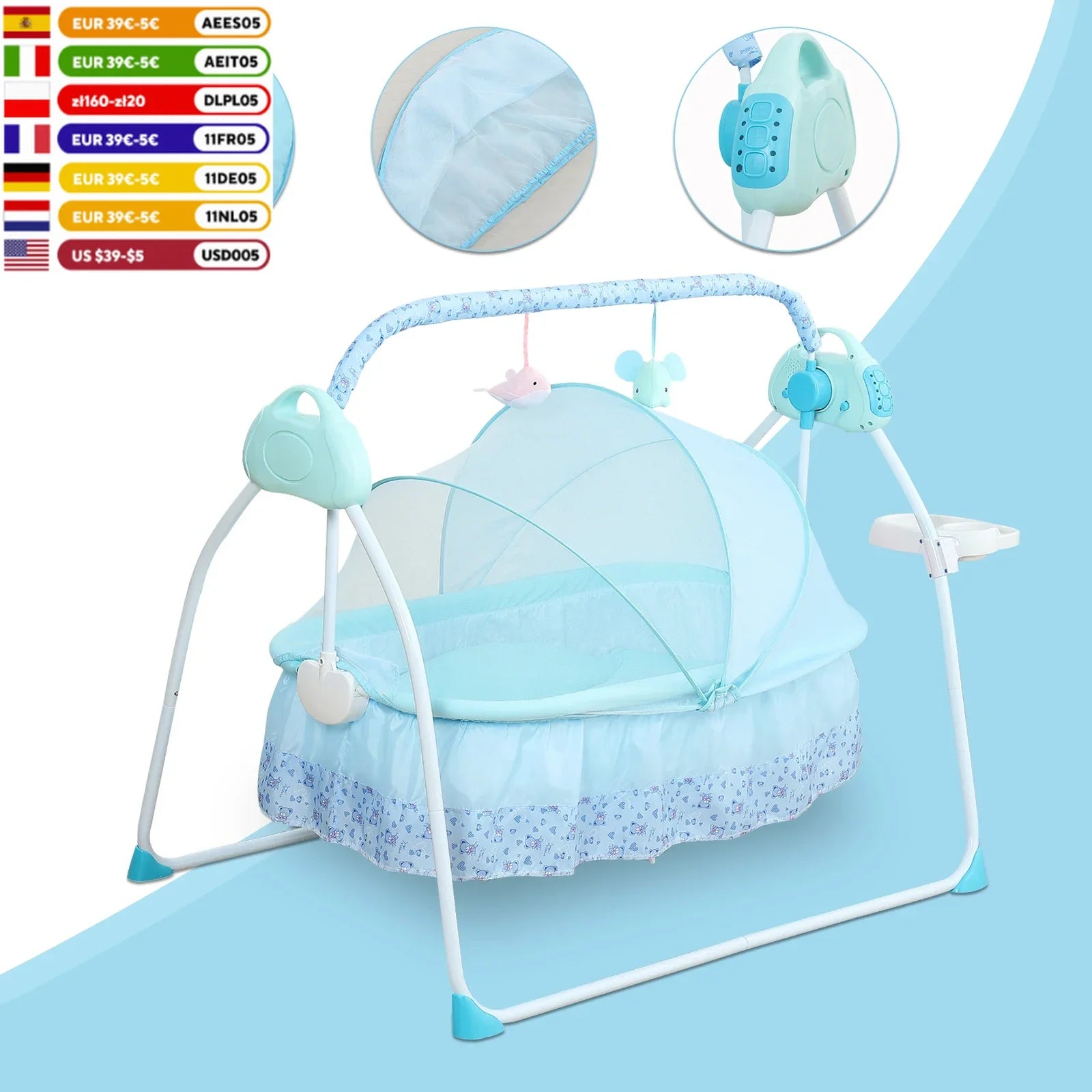 0-18 months Electric Kid Baby Crib Cradle Infant Rocker Auto-Swing Sleeper Bed Cot Bluetooth Blue 25kg