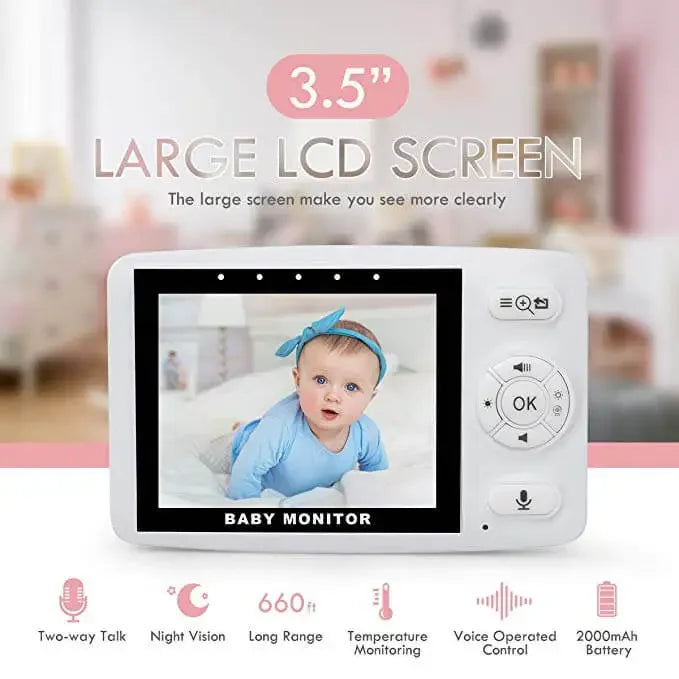 3.5 Inch Video Baby Monitor Two-Way Audio Long Range, Infrared Night Vision, Lullabies And High