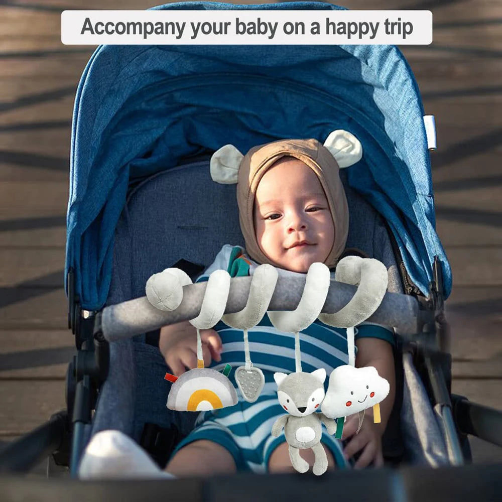 Activity Spiral Plush Hanging Baby Car Seat Toy Wrap Around Pram Pushchair Stroller Sensory Early Education Toy for Toddler Gift